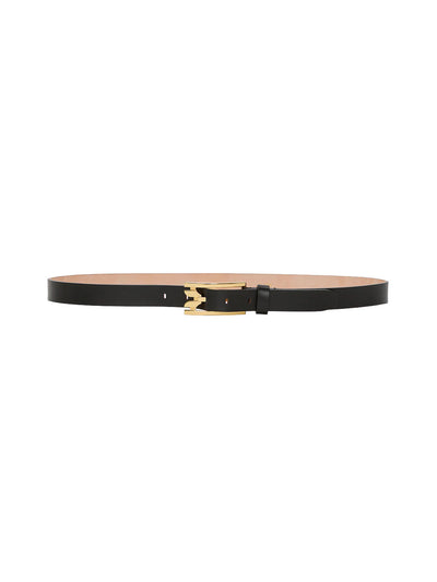 Silver Buckle Micro Dorian Belt In Black Grained Leather