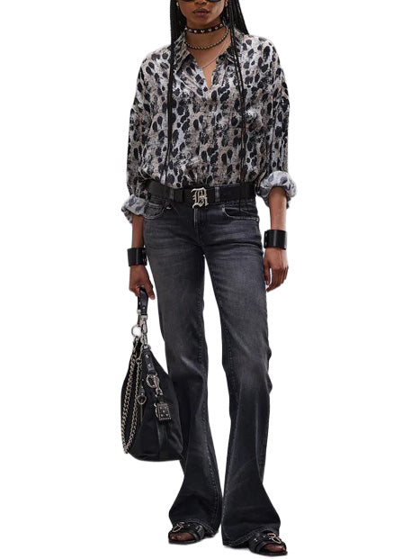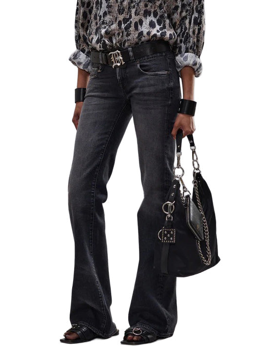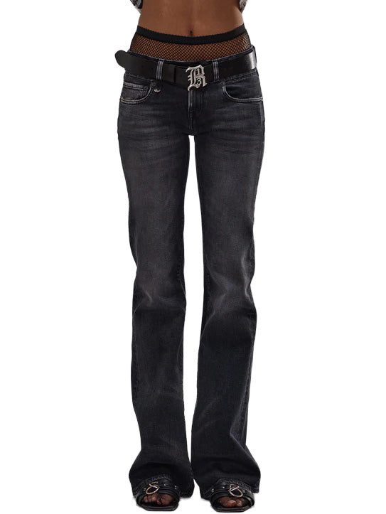 The Boy Flare is a fitted low rise jean at the top that flares out at the leg for a dynamic silhouette. Built with 12.5 oz black stretch denim and featuring a mid-heavy worn dark black wash with mild grinding throughout local areas.