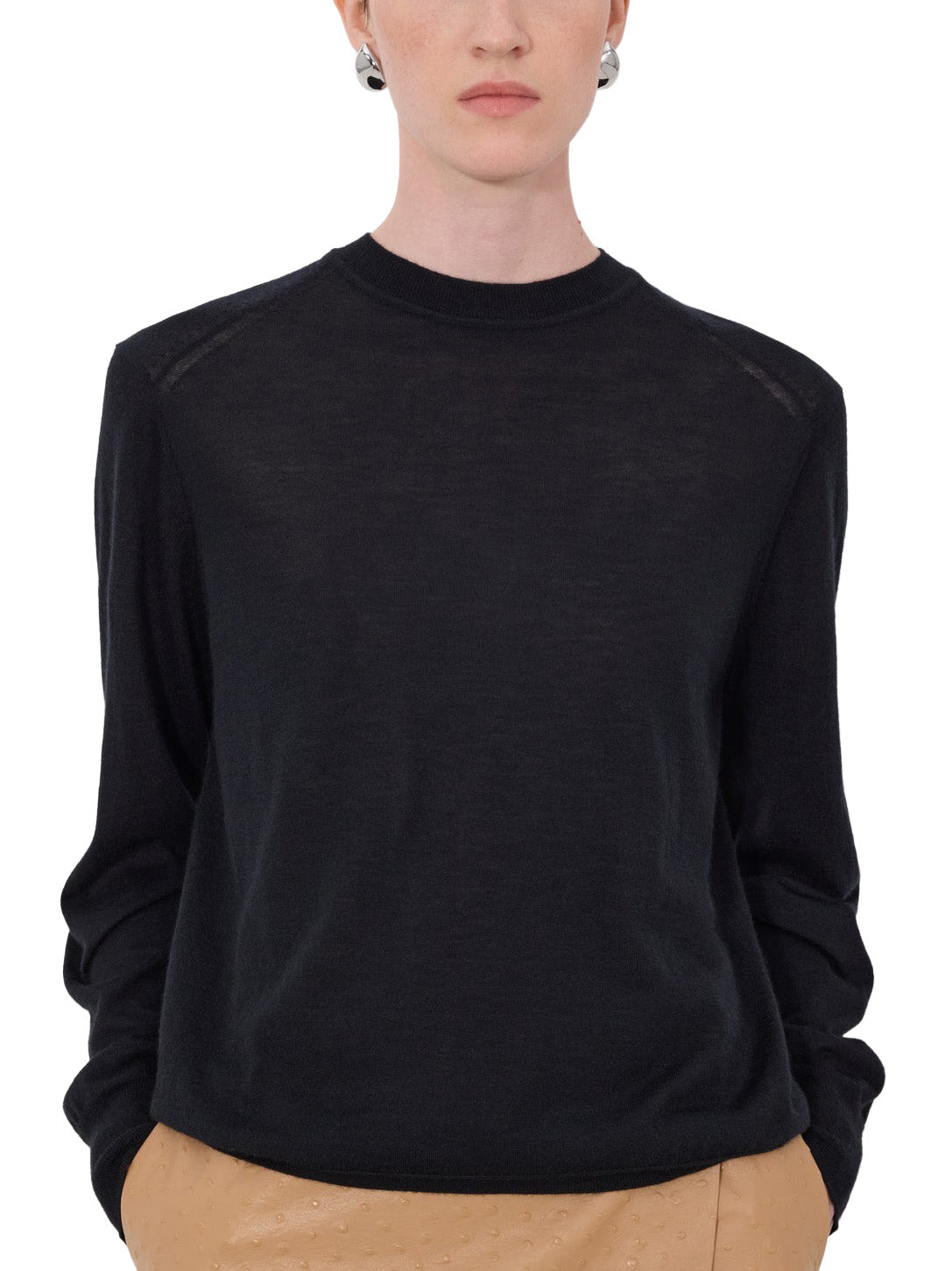 This sweater is made of fluid, fine knit cashmere, making it a perfect mid-season essential. Its ample fit is adjusted around the hips and is complete with drop shoulders, a crew neck and ribbed details on the collar, hem and cuffs.