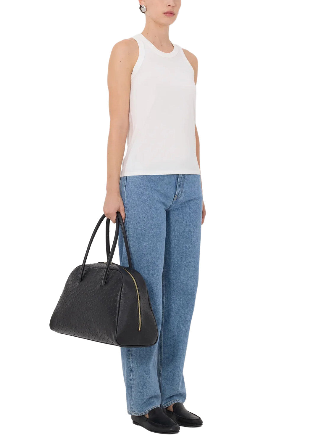 This tank top is made of Supima cotton, chosen for its ultra soft, lightweight yet resistant quality. The fit is straight, with a rib neckline and thick straps that accentuate the shoulders.