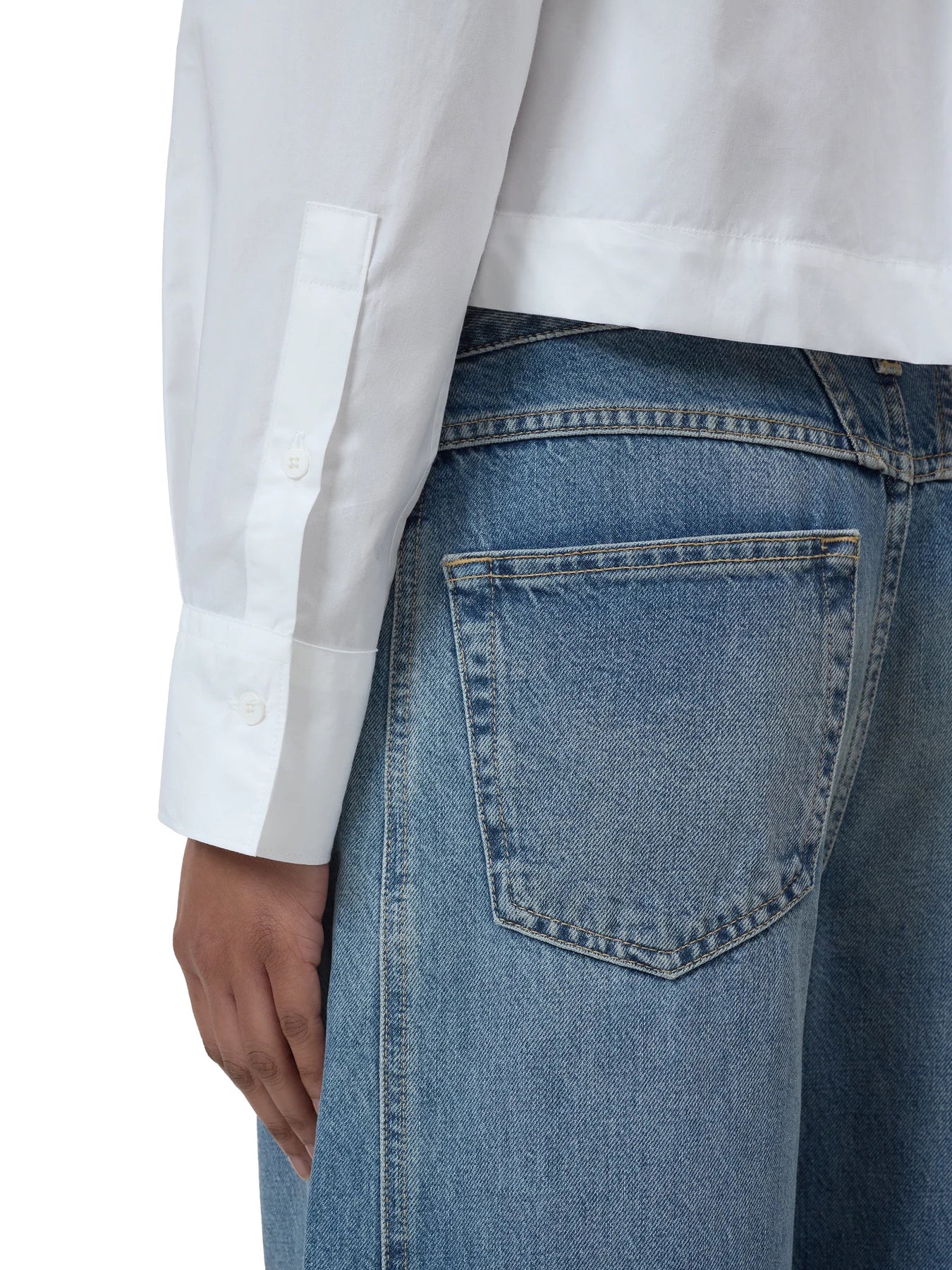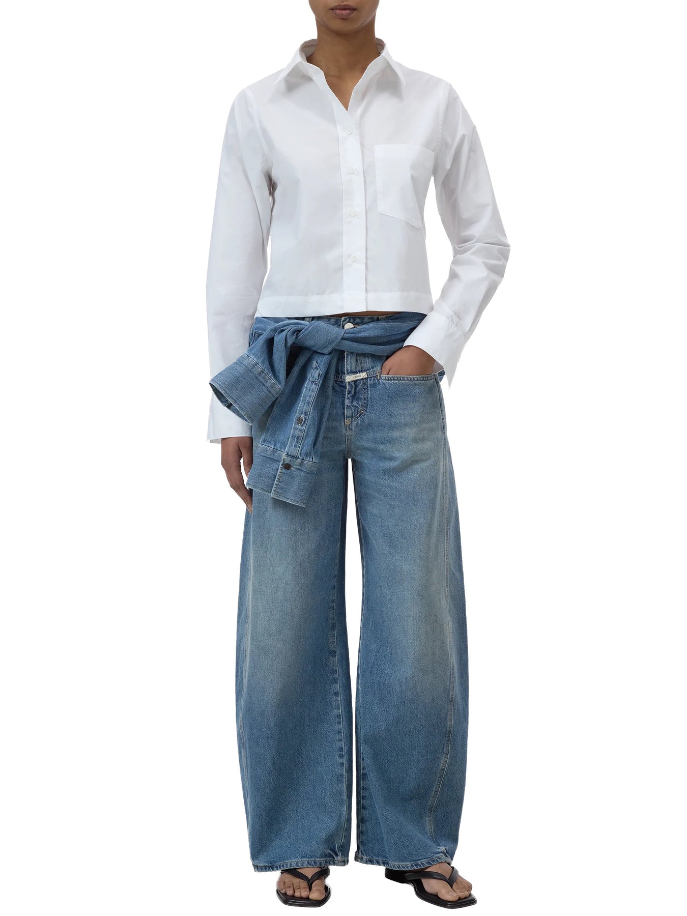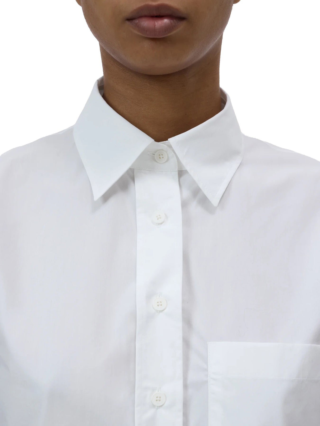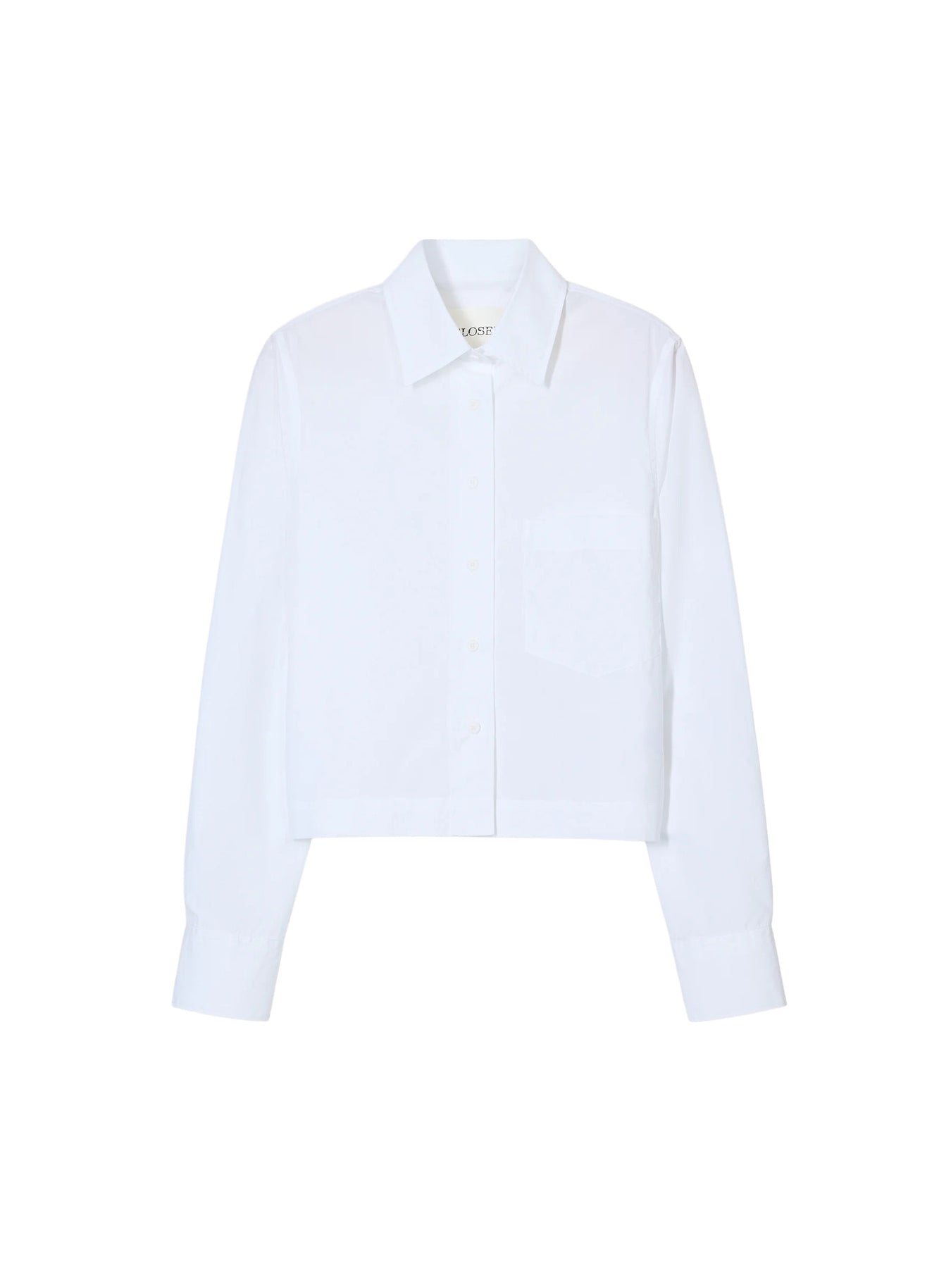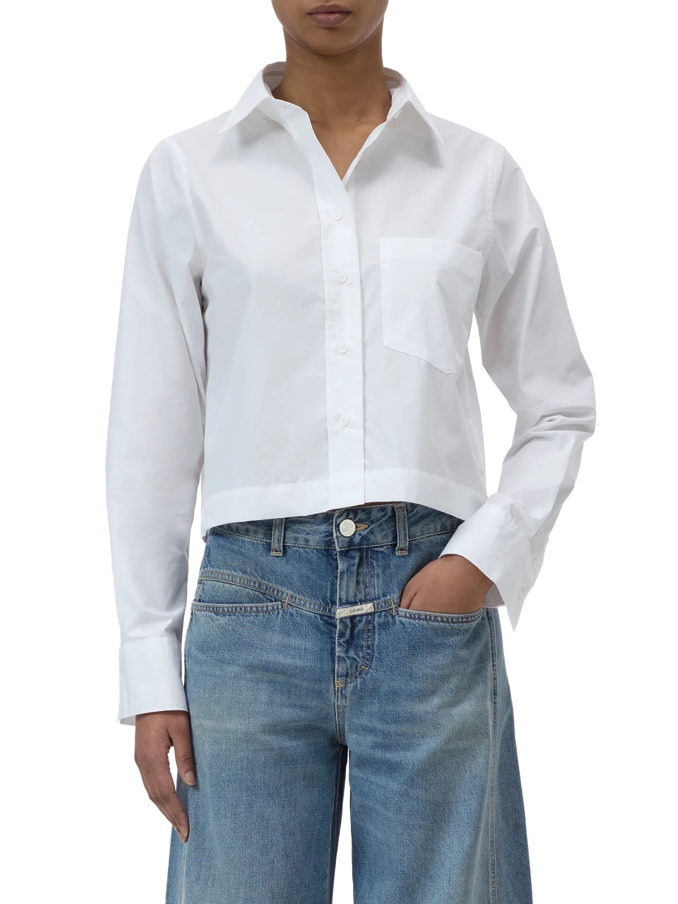 The classic cropped blouse comes in a shortened length. The organic cotton poplin offers a pleasant paper touch feel. Details include a chest pocket with Closed signature stitching, straight hem, and tonal buttons. Sustainably made in Portugal.