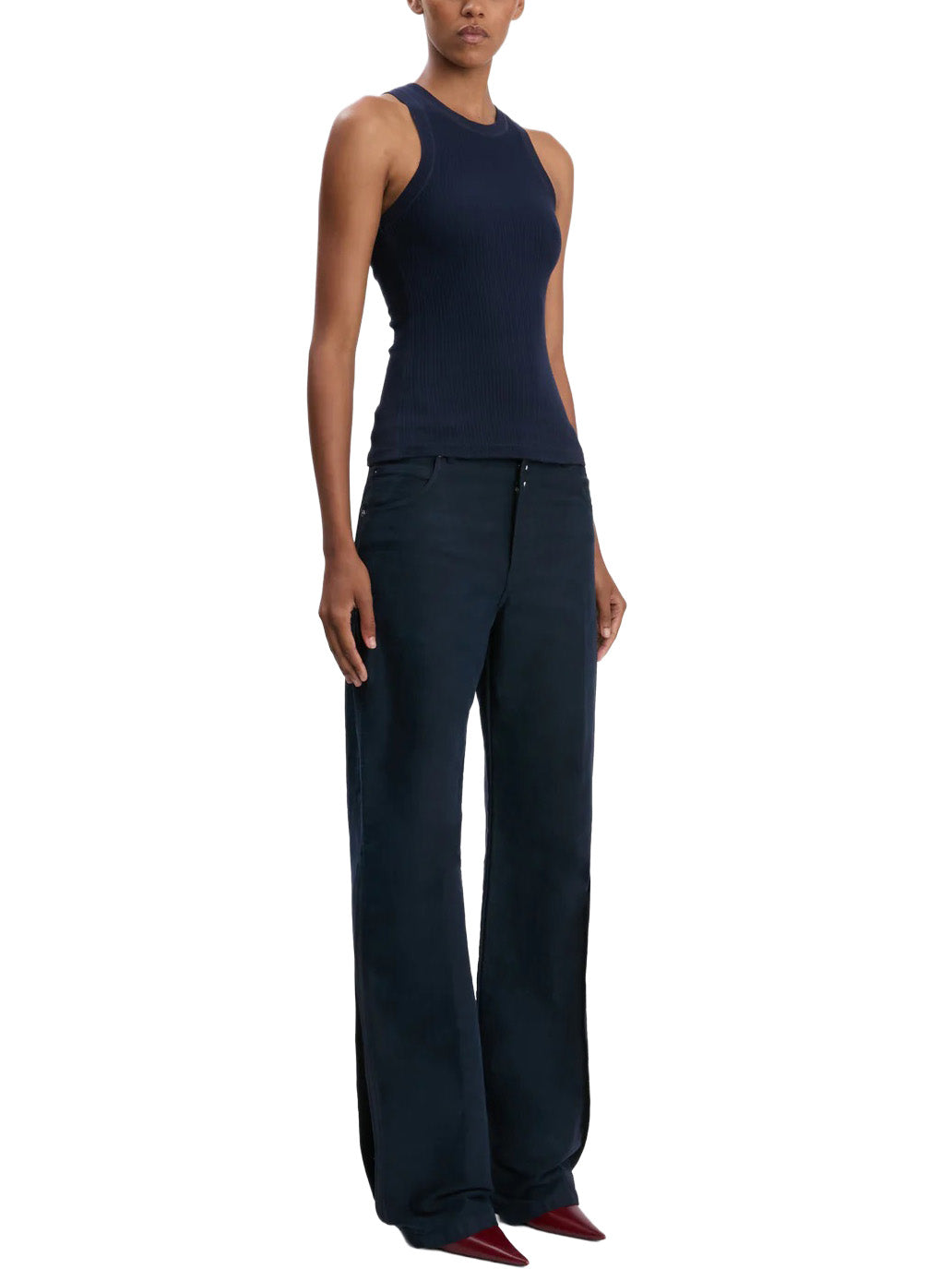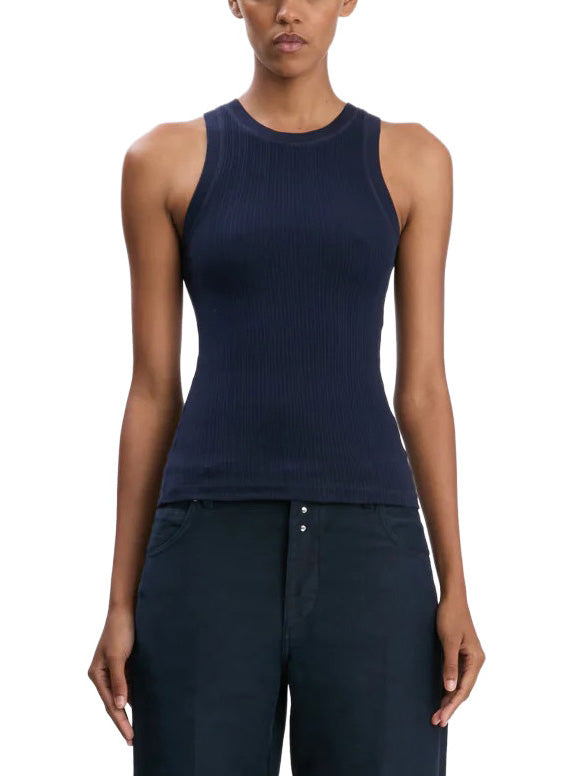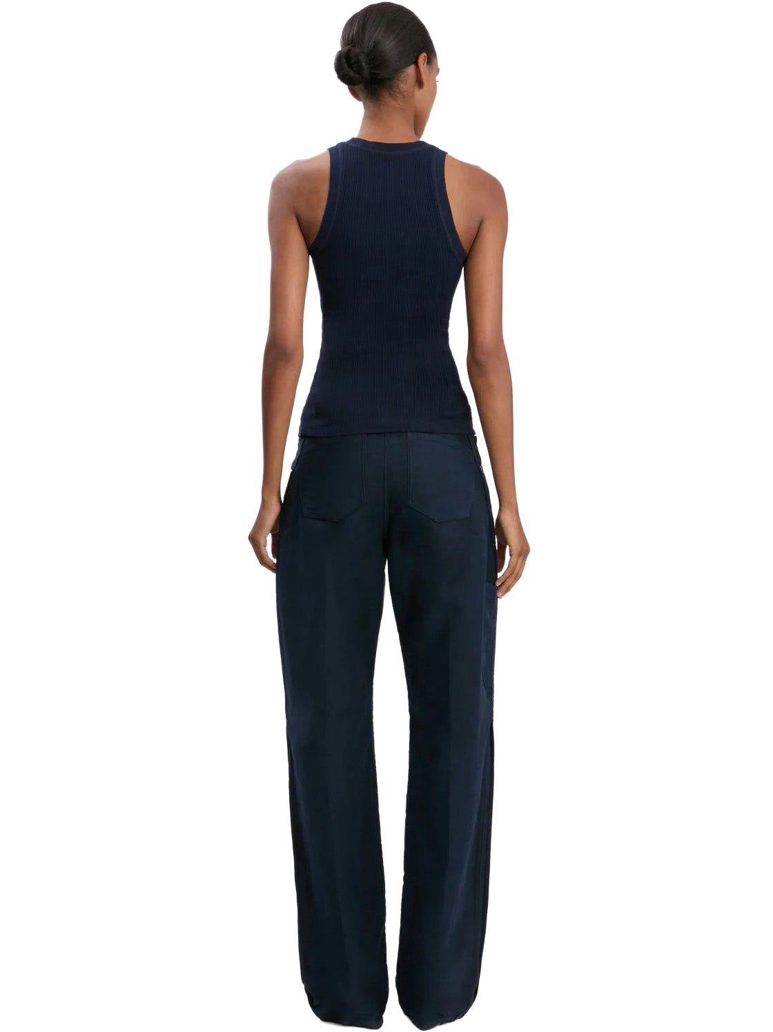 A foundational piece in any wardrobe, the Rib Tank in Navy is crafted from 100% organic ribbed cotton for a tactile finish. Designed for a slim fit, it has a relaxed racer-back design and a contrasting Victoria Beckham monogram at the centre back neckline.