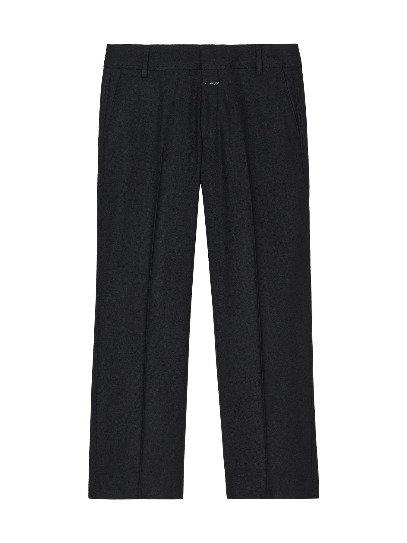 The Serandon pants have a straight, cropped cut and low-rise waist. They are made from structured flannel with soft drape, thanks to viscose content. Features include a wide waistband, press creases, and back welt pockets with detailed topstitching. Made in Romania. Can be combined with the matching blazer.