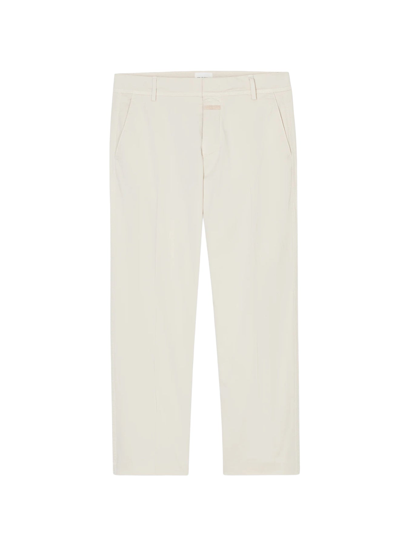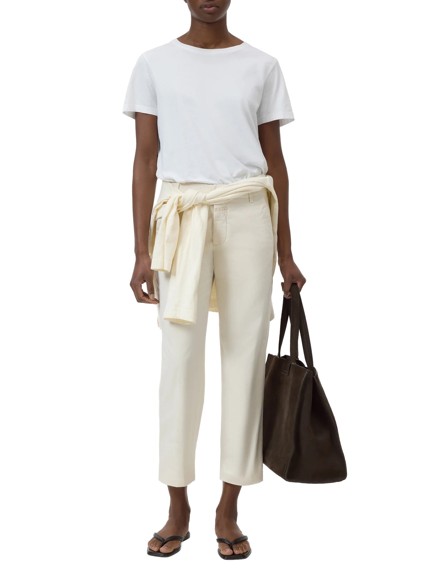 The Serandon straight-fit pants blend comfort with sophistication through their low-waist and cropped-leg design. The formal cotton satin construction delivers a semi-shine finish and luxurious touch, enhanced by special antique-dye processing for a subtly faded look. The pants have an elaborately made inner waistband, French pockets at the front and welt pockets at the back.