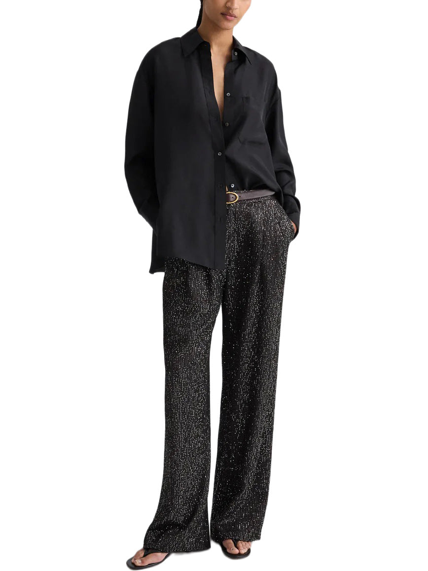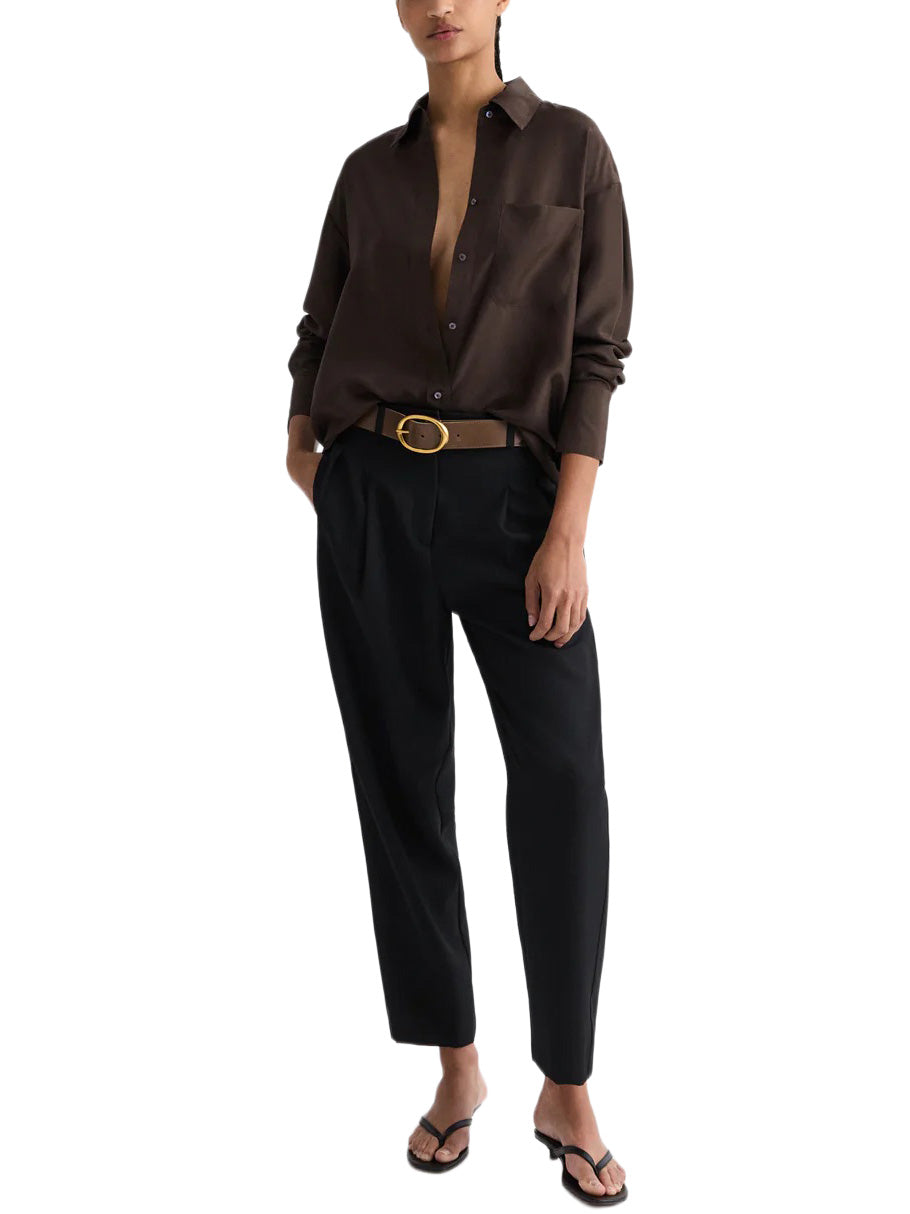 Oversized shirt in washed silk habotai. The Big Joe is a menswear inspired, relaxed button down. Complete with a chest patch pocket, button up placket, french cuffs and a tulip hem.
