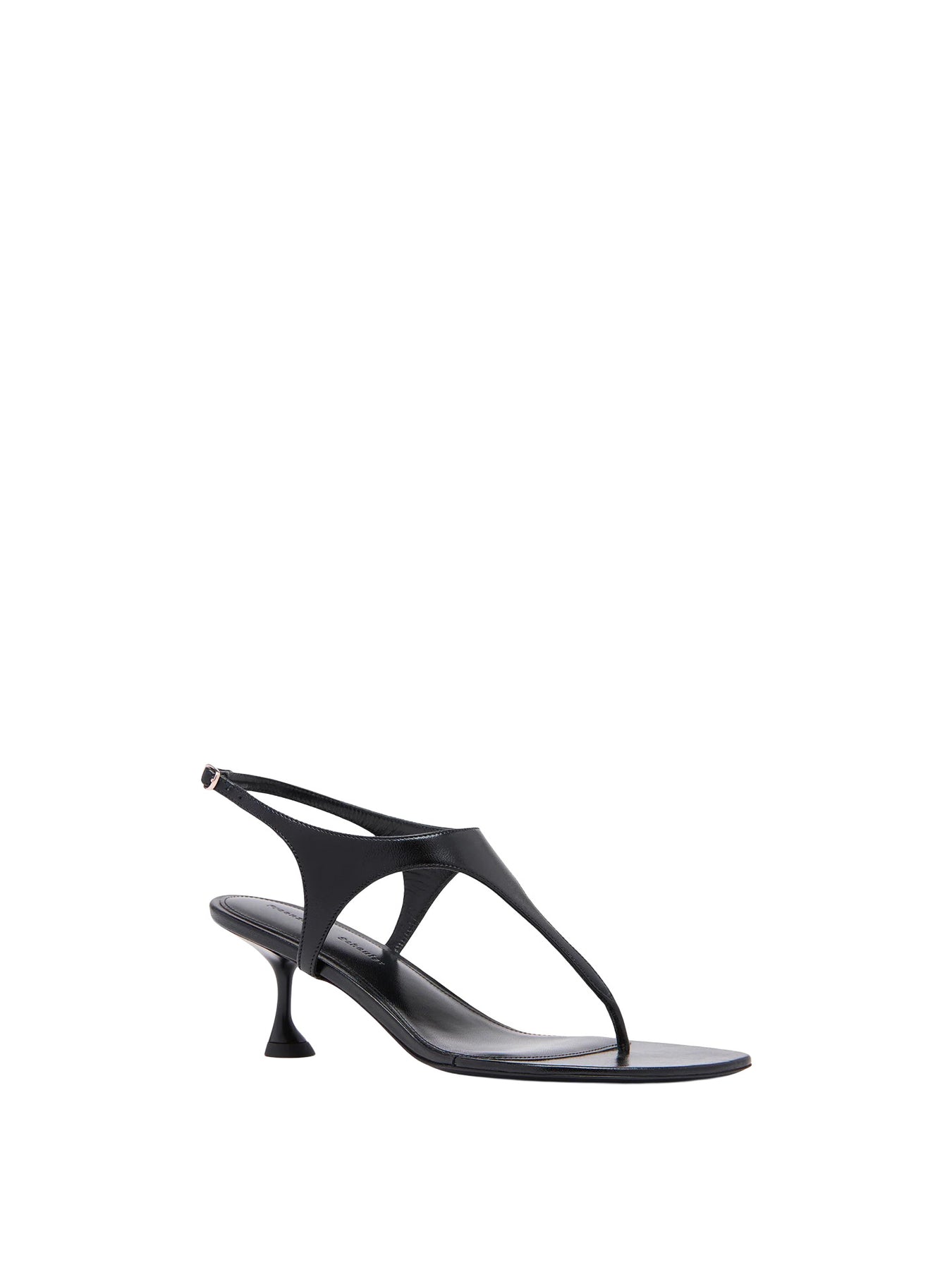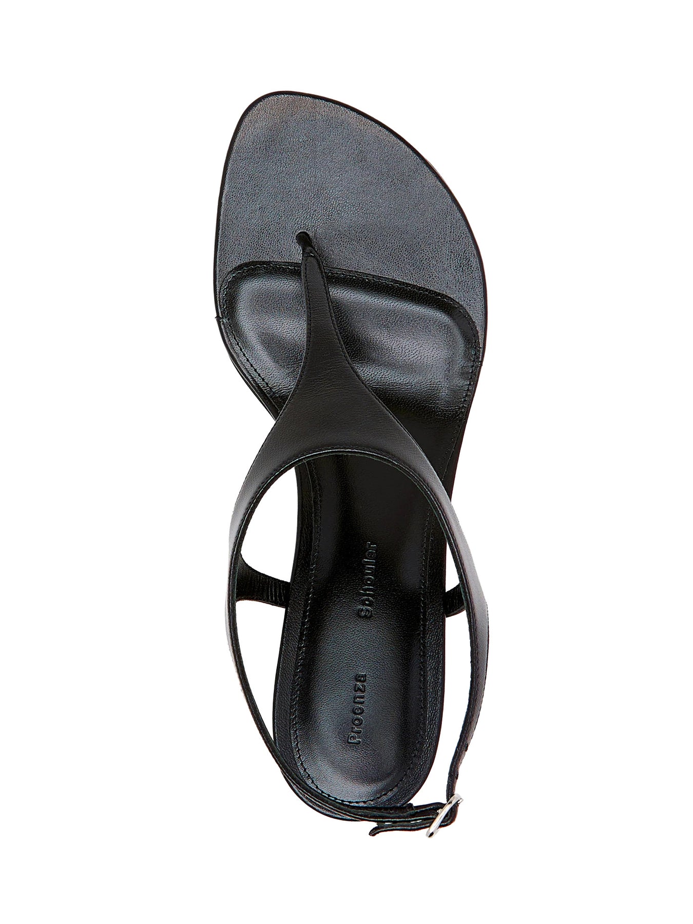 The Tee Thong Sandals are crafted in slick, shiny nappa leather to a T-strap silhouette with a side buckle closure.