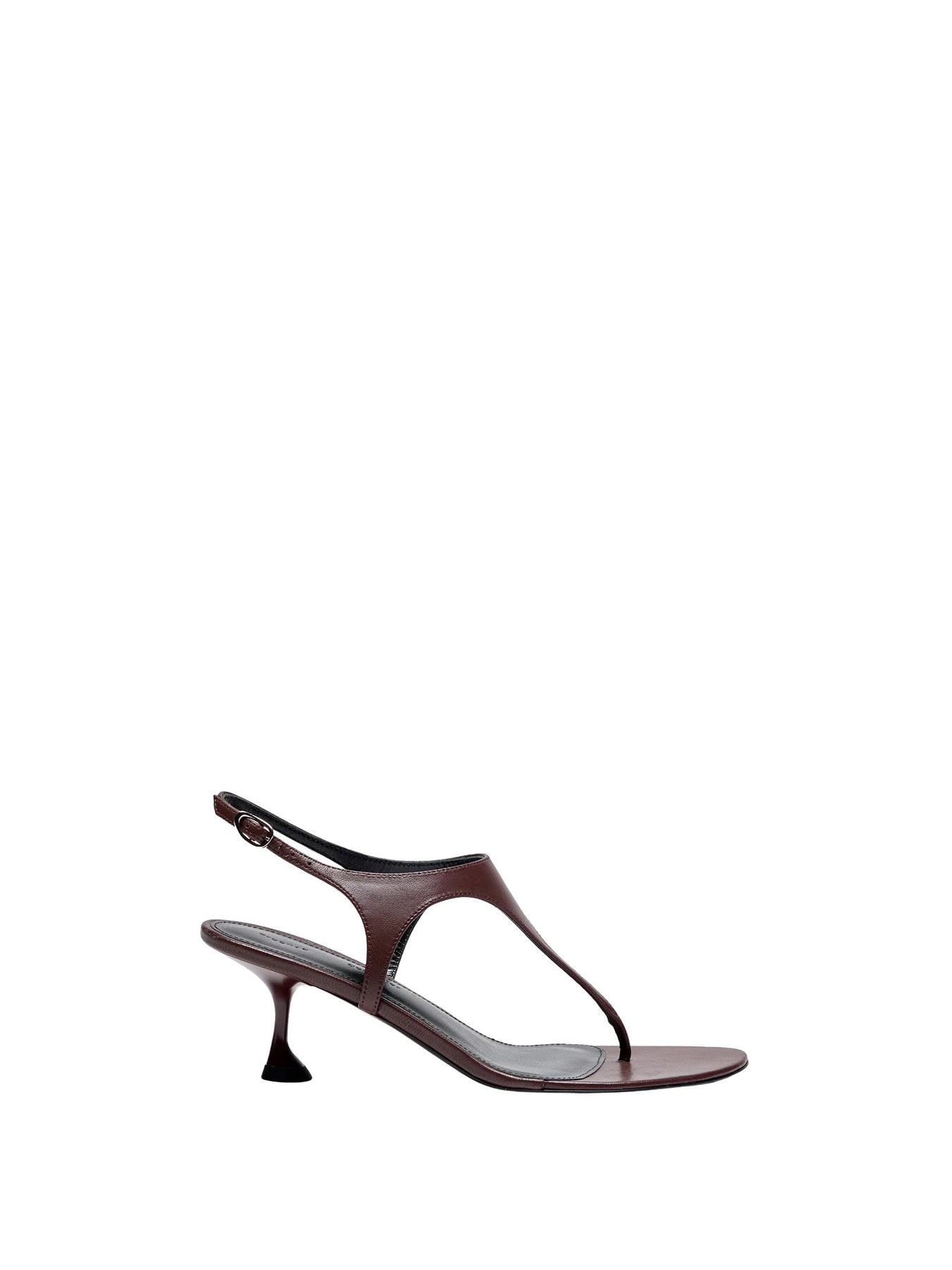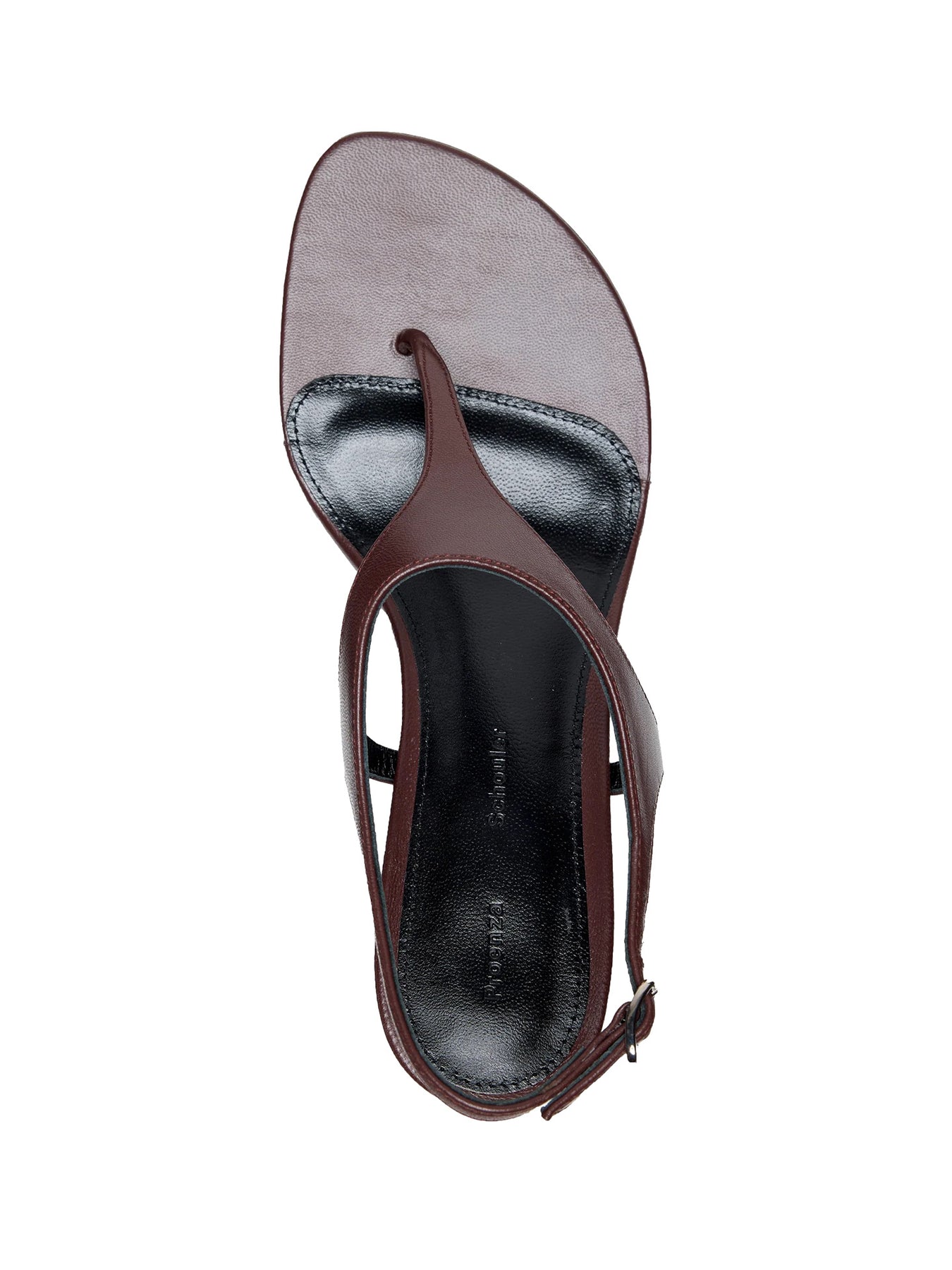 The Tee Thong Sandals are crafted in slick, shiny nappa leather to a T-strap silhouette with a side buckle closure.