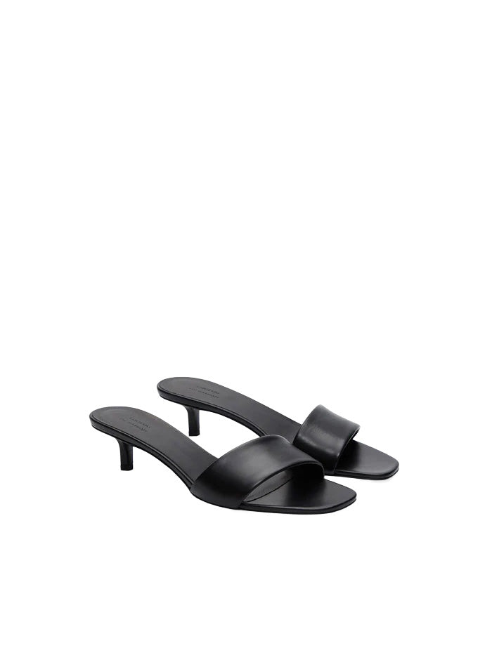 These mule sandals are made of soft calf leather, and crafted following Italy’s timeless artisanal tradition. Their minimal construction features a thick top strap and a 45 mm kitten heel, making them a versatile, easy-to-wear option to complete both daytime and evening outfits.