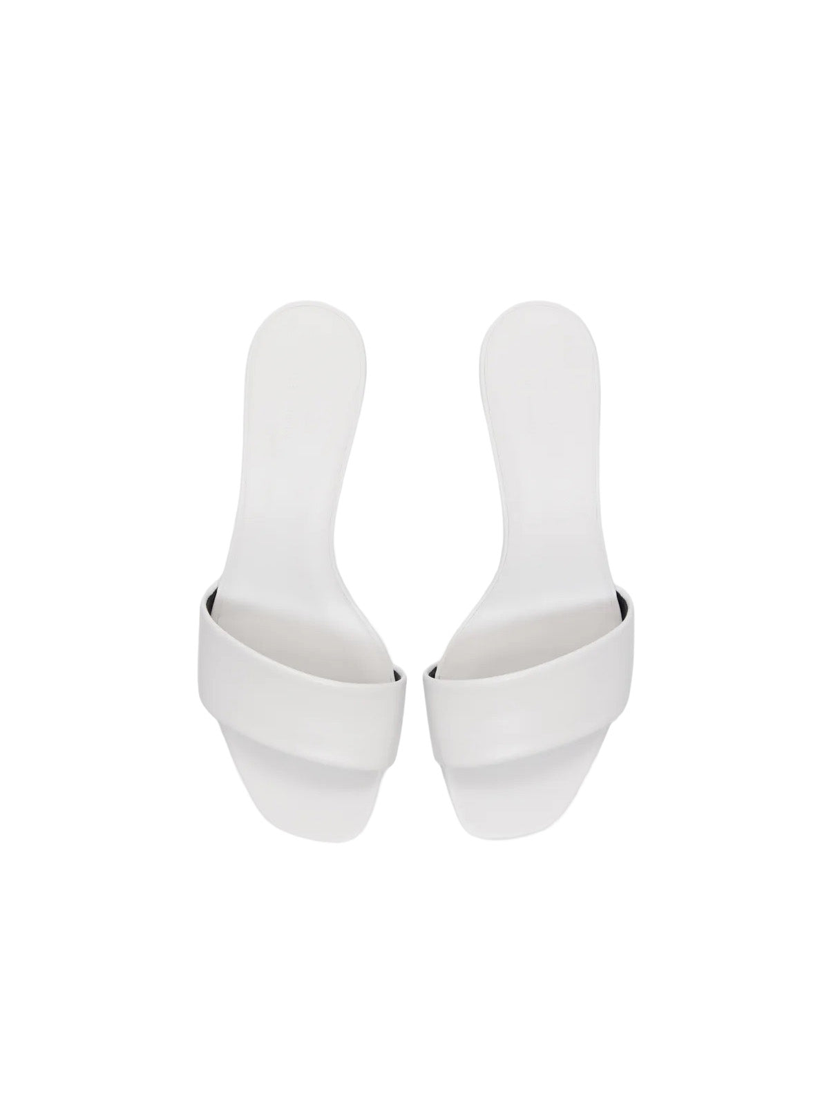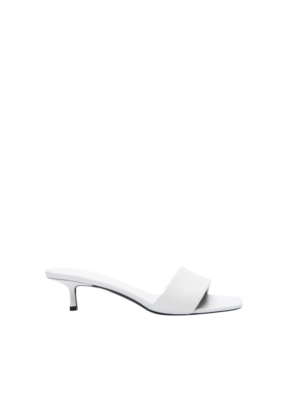 These mule sandals are made of soft calf leather, and crafted following Italy’s timeless artisanal tradition. Their minimal construction features a thick top strap and a 45 mm kitten heel, making them a versatile, easy-to-wear option to complete both daytime and evening outfits.