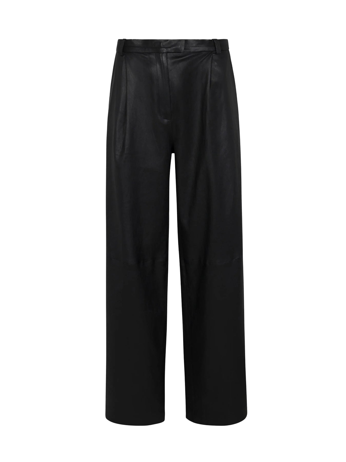 An indispensable addition to your capsule wardrobe, the Paloma Pleated Trousers are fashioned from our buttery-soft French plongé leather, offering an oversized, sophisticated drape and a silhouette that elongates the legs. The front features pleated detailing, that naturally tailors the waistline for a flattering, effortless fit. These trousers seamlessly transition from casual to formal settings—perfect with a tucked-in tee and sneakers or a blazer and heels.