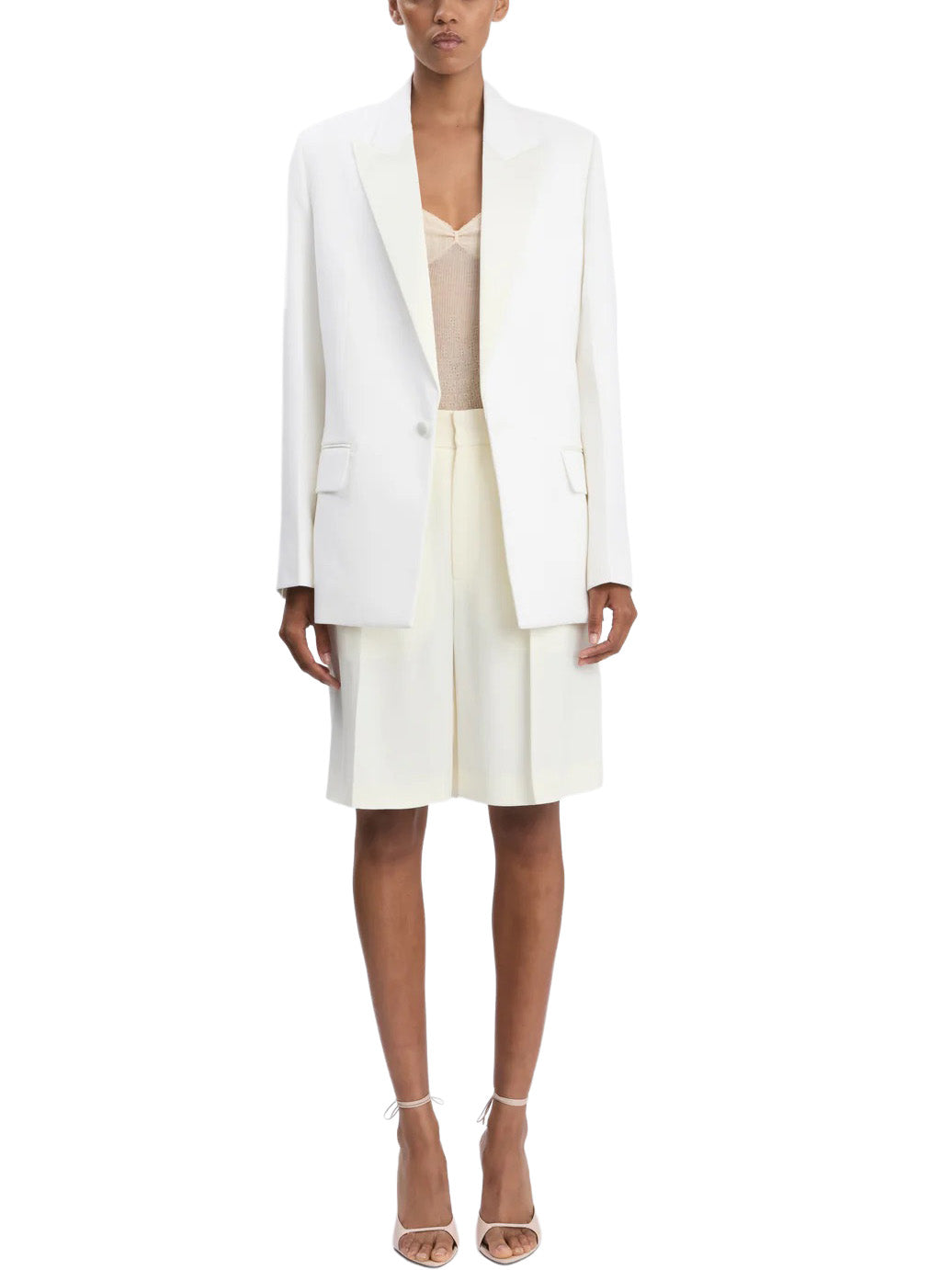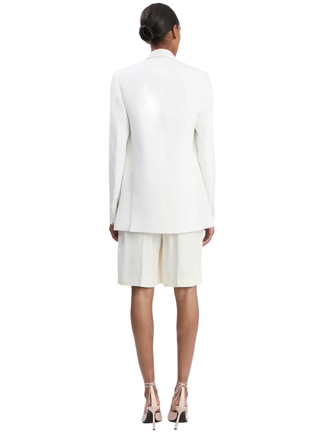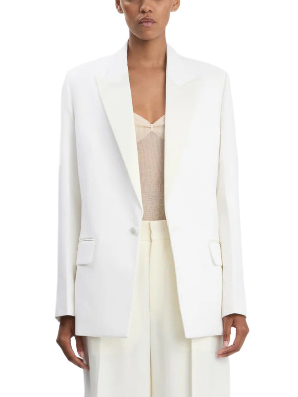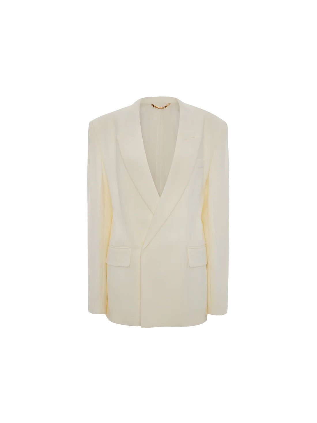 A textured twill fabric re-energises the classic tailored jacket. Cut with an oversized fit that finishes below the hip, the Double Breasted Tailored Jacket in Ivory has a modern fluidity. Classic front jet pockets with flaps, a welt chest pocket and back double vents complete the look.