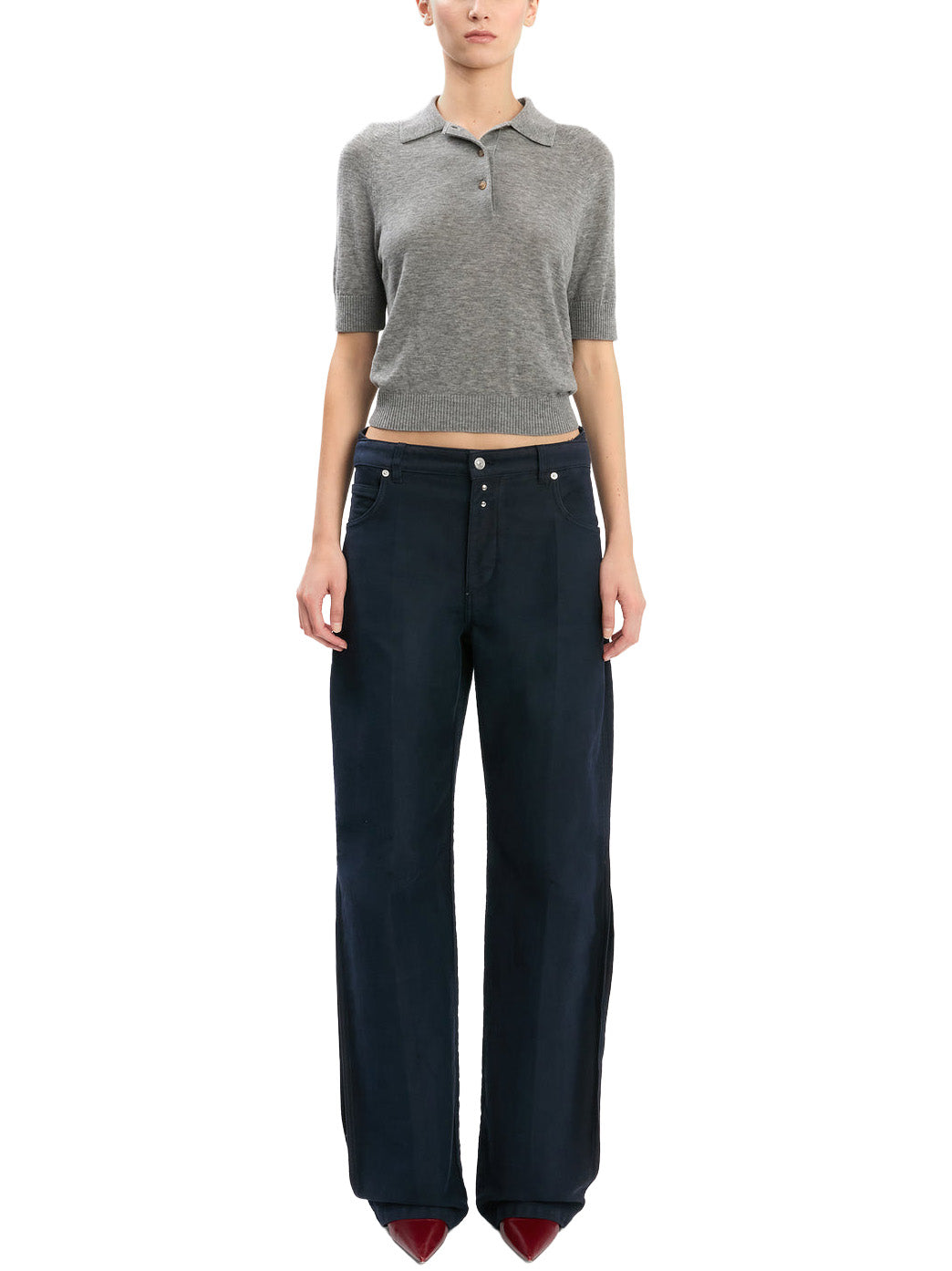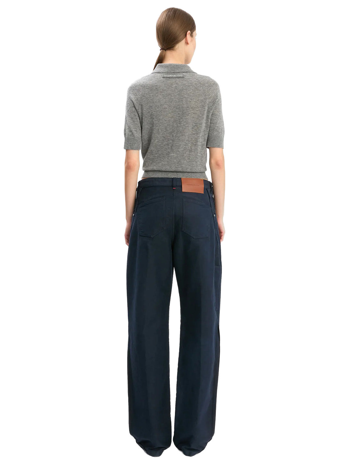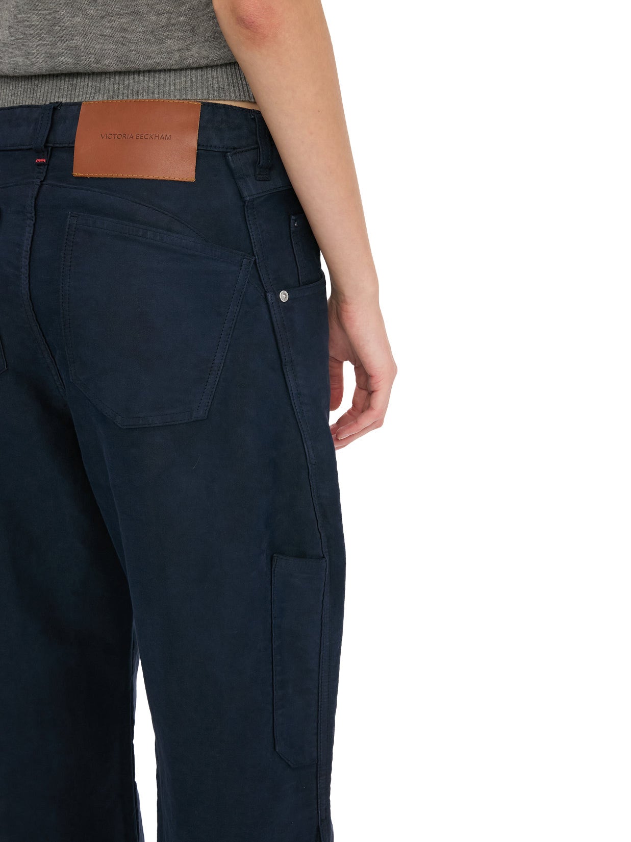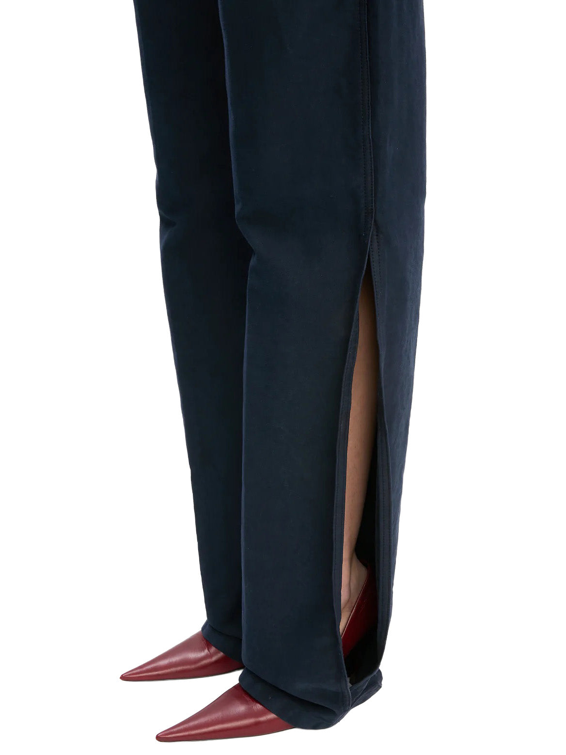 The classic cargo pant is reimagined with a distinctive split detail on each outside leg. Crafted from a mid-weight moleskin fabric in versatile Navy, the Split Utility Trouser has a mid-rise waistline, straight-cut leg and six-pocket design.